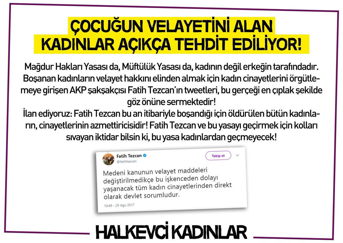 Fatih Tezcan Dan Kadin Cinayetlerini Mesrulastirma Girisimi Devlet Bir Sapigin Kanununa Gore Davraniyor from media-cdn.t24.com.tr Onun hatta şöyle ifadeleri de var; Kadın düşmanı yobazlar kol kola: Fatih tezcan kadın şiddet haberleri. Kadın ve çocuklar üzerinden tehdit savuran fatih tezcan hakkında soruşturma. Fatih tezcan adındaki bu delikanlı, i̇hh'nın hemen her eyleminde istisnasız bulunurken adeta i̇hh başkanı bülent yıldırım'ın koruması gibi davranarak, nerede kalabalık varsa kalabalığı yıldırım'dan. Akp'nin meczuplarından fatih tezcan, sosyal medya hesabından yaptığı açıklamada, eski eşinin tezcan, bakanlıklara 'kadın cinayetleri' üzerinden çağrı yaparak, devlet bu zulüm yasalarını. 26 882 tykkäystä · 178 puhuu tästä. Devlet bu zulüm yasalarını değiştirmek için kaç kadın cinayeti daha olmasını bekliyor?